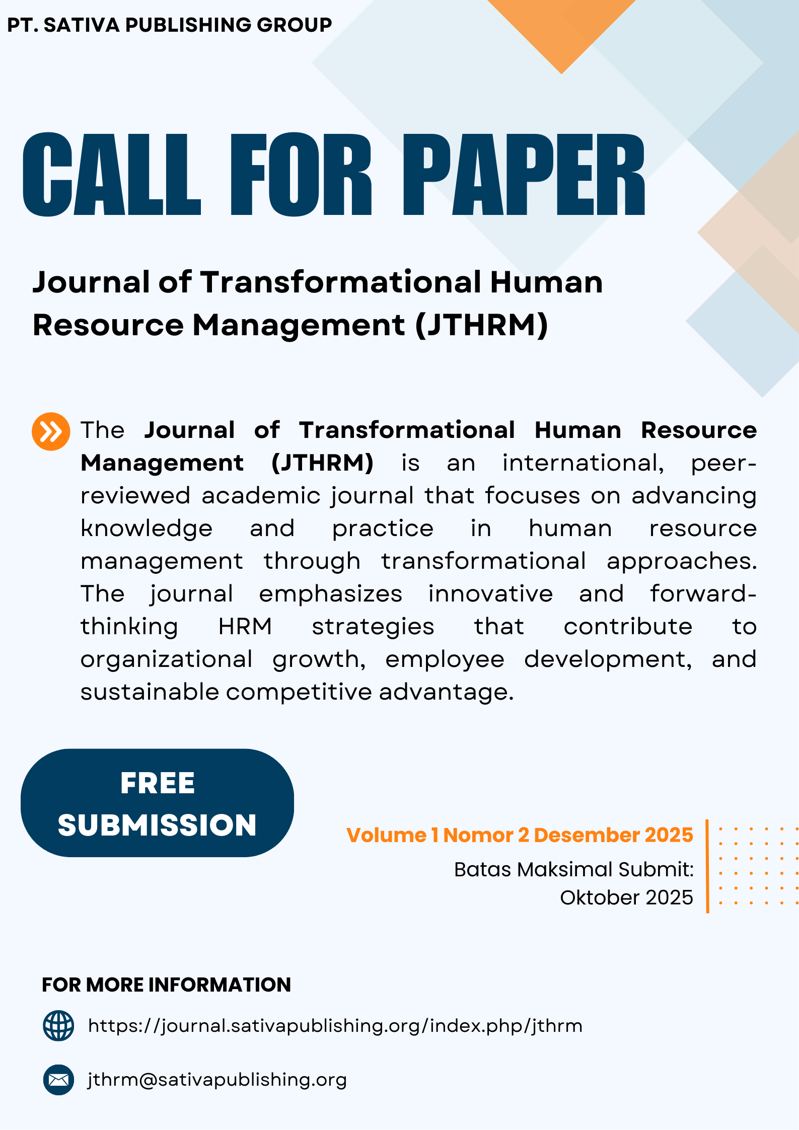 The Journal of Transformational Human Resource Management (JTHRM) is an international, peer-reviewed academic journal that focuses on advancing knowledge and practice in human resource management through transformational approaches. The journal emphasizes innovative and forward-thinking HRM strategies that contribute to organizational growth, employee development, and sustainable competitive advantage.